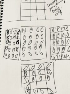 Szkice stanowią moje pierwsze próby przeniesienia pomysłów na płótno. To czas eksperymentów z formą, poszukiwania odpowiednich proporcji i układów. Są to ruchome obrazy, które stopniowo nabierają kształtu.