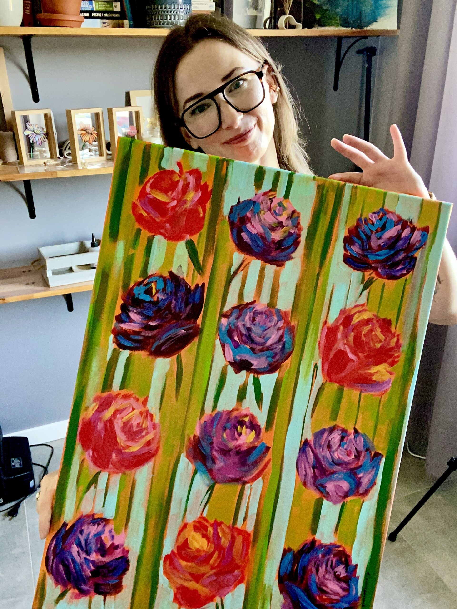 Czytaj dalej Obraz abstrakcyjny na płótnie „Róże” E.Machnik 50x70cm