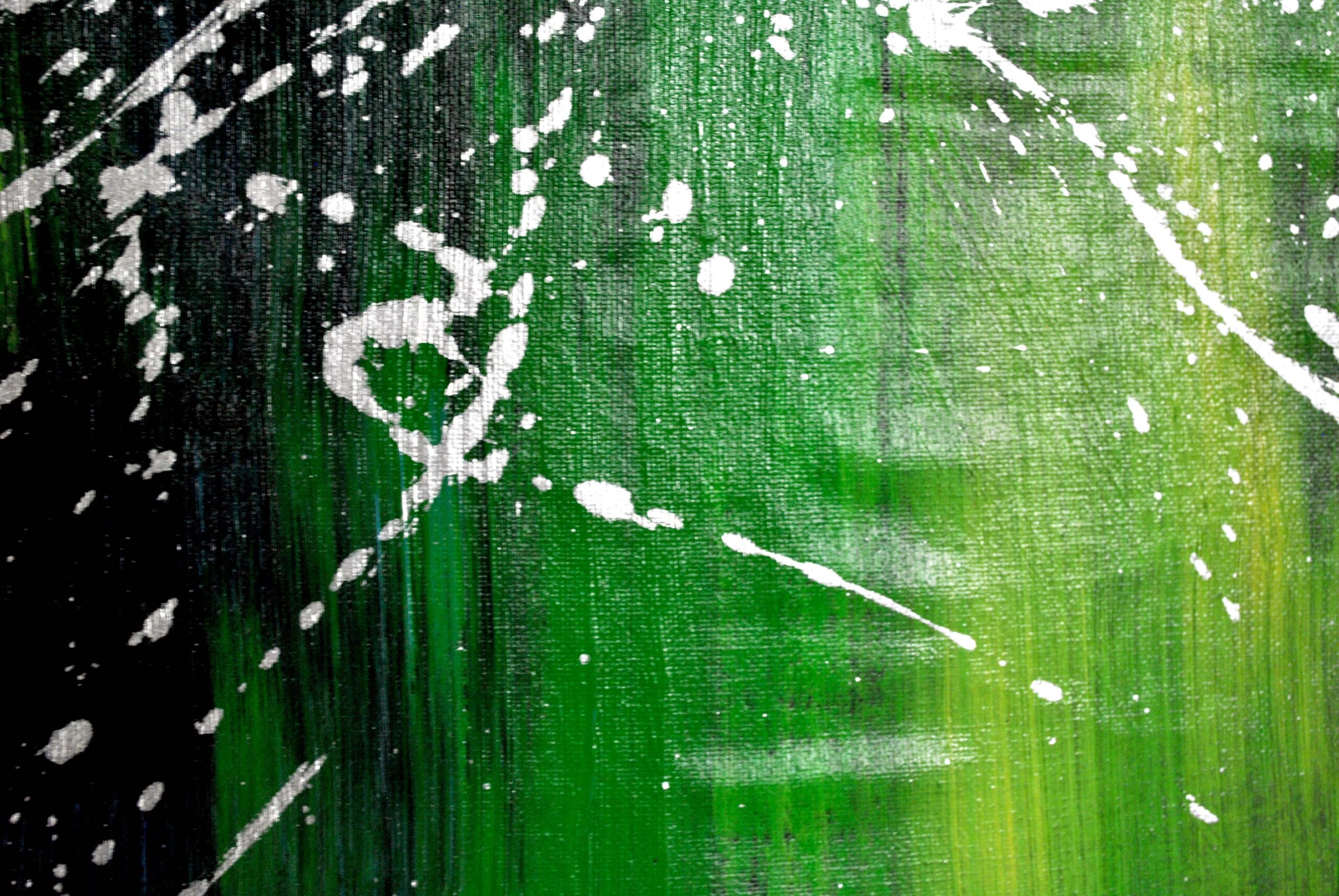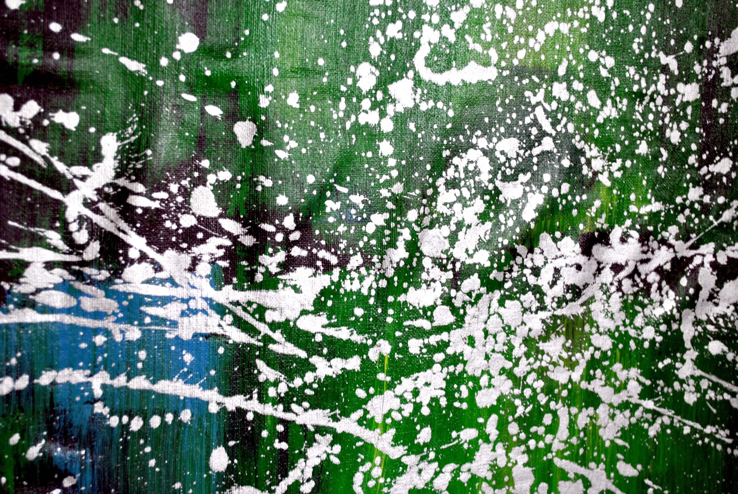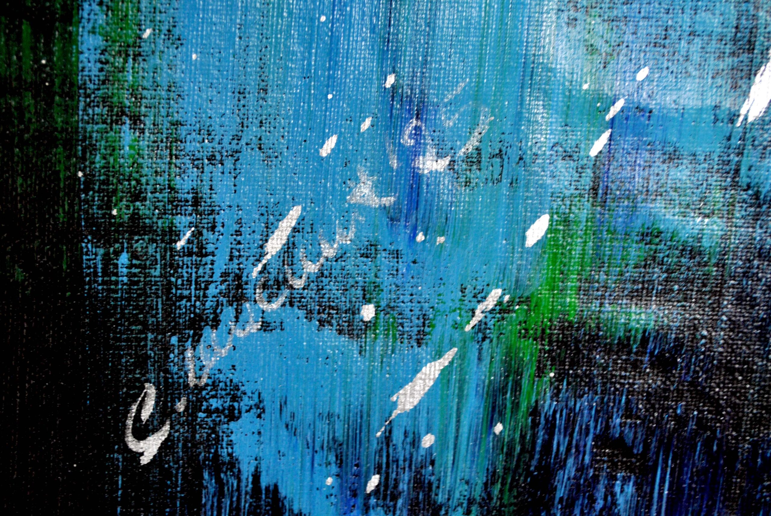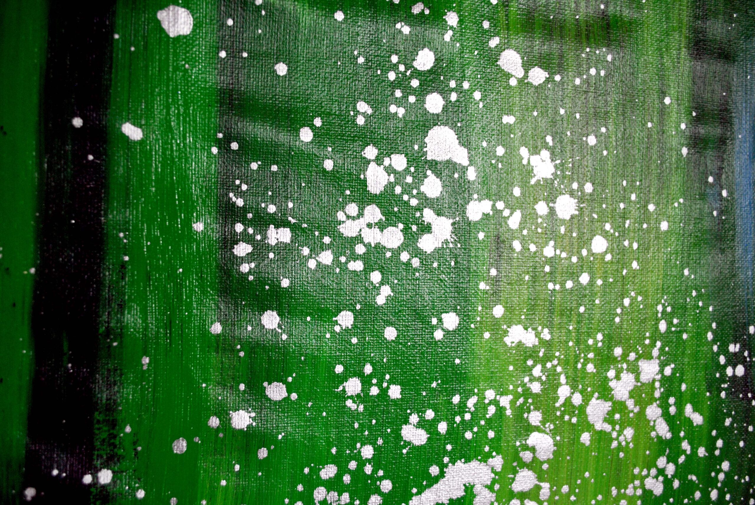 Hipnotyzująca i pełna dynamiki kompozycja inspirowana niezwykłym spektaklem zorzy polarnej. „Aurora Burst” oddaje magię tańczących świateł na nocnym niebie – intensywne odcienie zieleni i błękitu przenikają się, tworząc głębię i iluzję ruchu, a srebrne akcenty dodają całości migotliwego blasku. Centralne rozświetlenie przypomina moment rozbłysku, gdy kosmiczna energia przecina niebo niczym elektryczne pulsowanie zorzy.