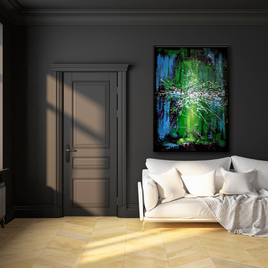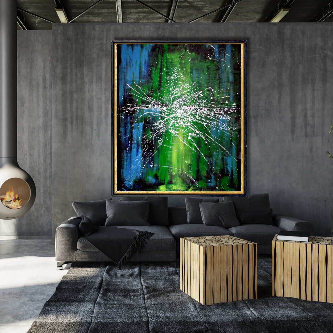 To dzieło, które emanuje energią i spokojem jednocześnie. Idealne do nowoczesnych wnętrz, przestrzeni w stylu minimalistycznym, loftowym czy industrialnym. „Aurora Burst” wprowadza atmosferę tajemnicy, natury i nieuchwytnej magii wszechświata.