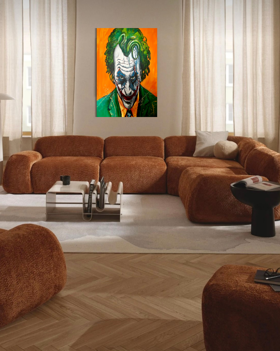 Obraz posiada zamalowane boki zatem nie potrzebuje ramy. Można go od razu zawiesić na ścianie