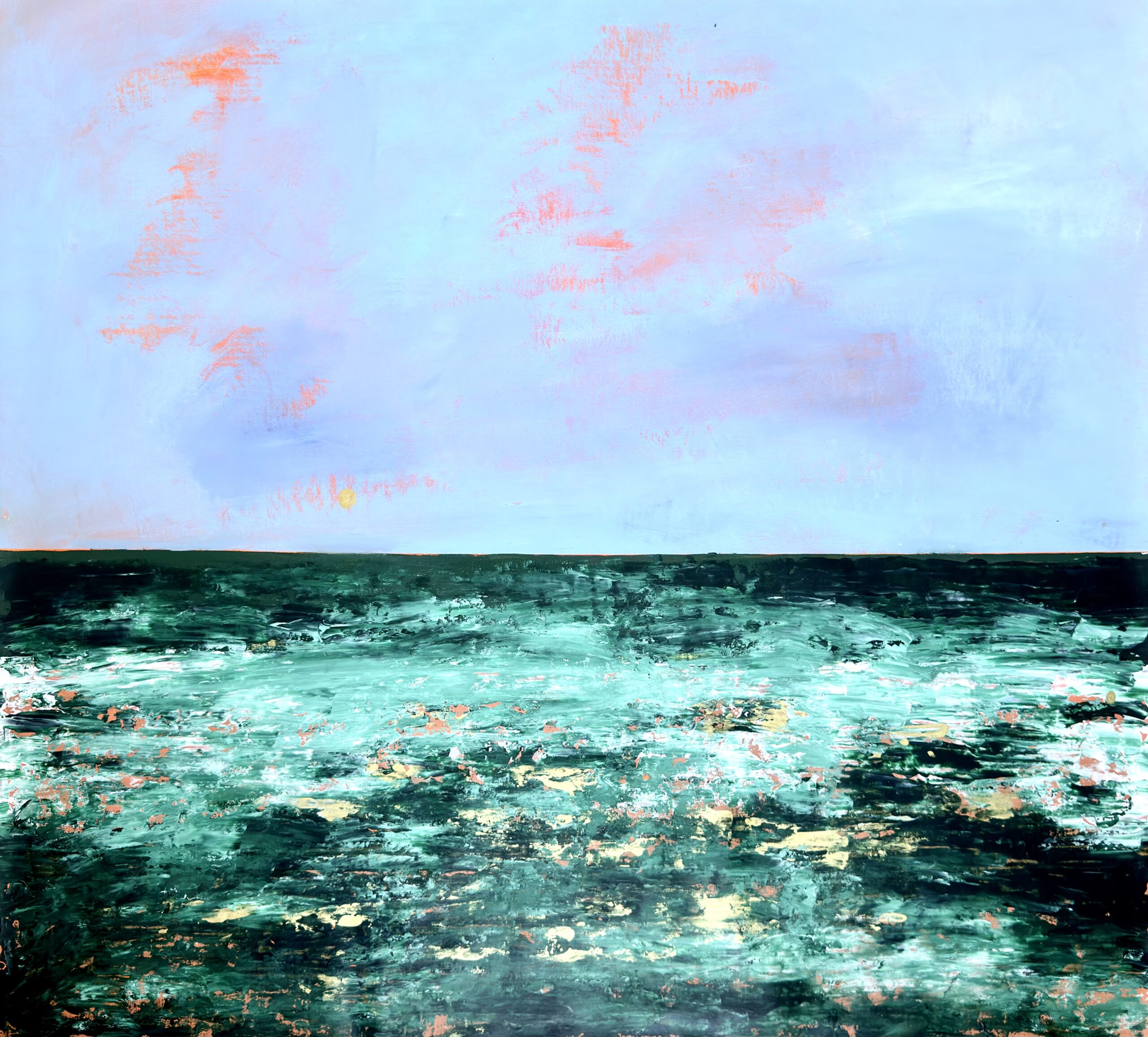 To obraz dla osób, które nie szukają dekoracji, lecz obecności sztuki w swoim domu lub biurze. Każda warstwa farby została położona świadomie – widać doświadczenie, kontrolę koloru i materiału oraz wyczucie skali, które pojawia się dopiero po latach pracy.