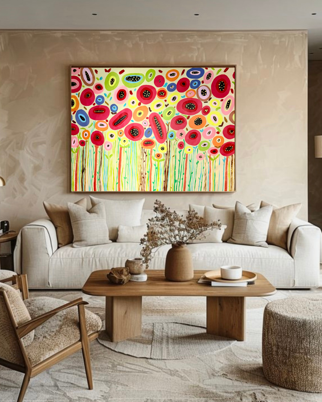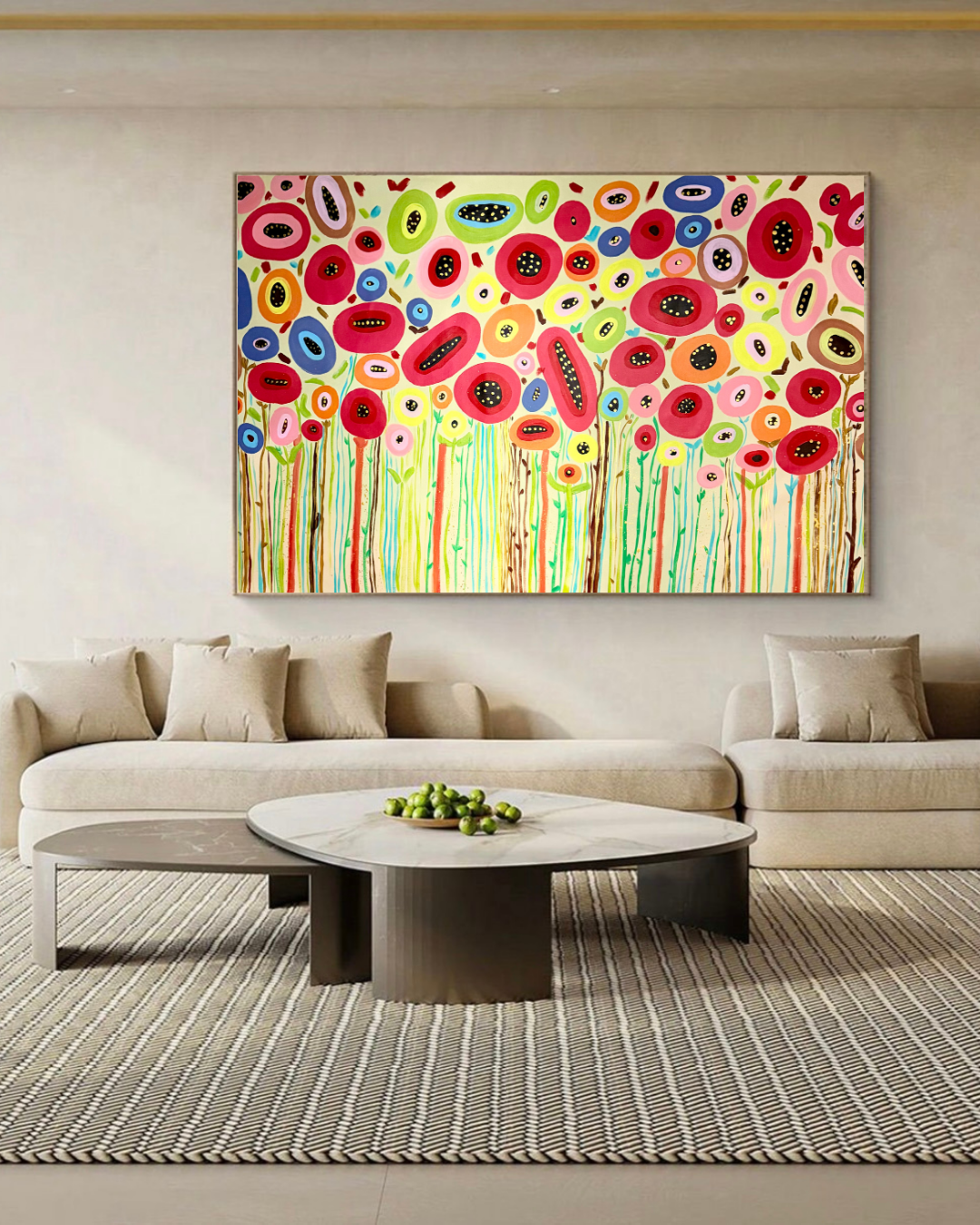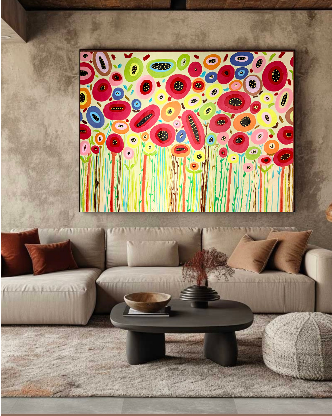 obraz maki, obraz akrylowy, obraz ręcznie malowany, duży obraz na płótnie, abstrakcyjne kwiaty, obraz do salonu, sztuka współczesna, dekoracja wnętrz, unikalny obraz, obraz okazyjna cena, obraz na sprzedaż, nowoczesne malarstwo, obraz czerwone kwiaty folk Polska wieś