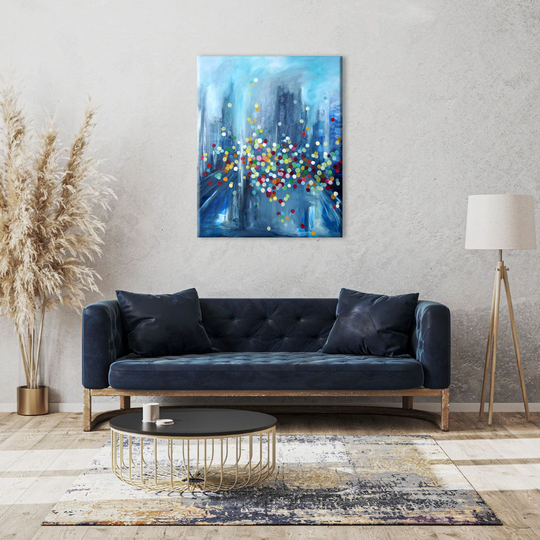 Obraz posiada zamalowane boki zatem nie potrzebuje ramy. Można go od razu zawiesić na ścianie