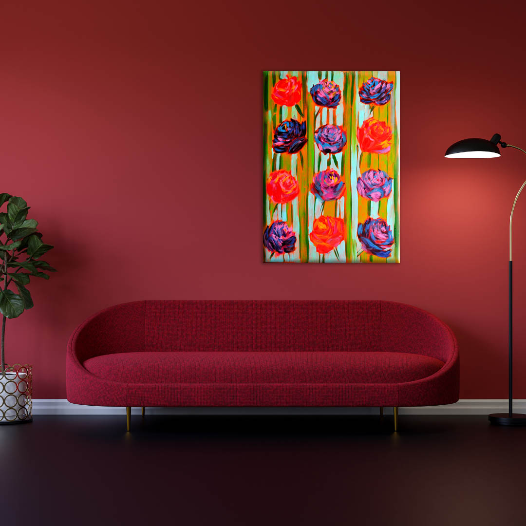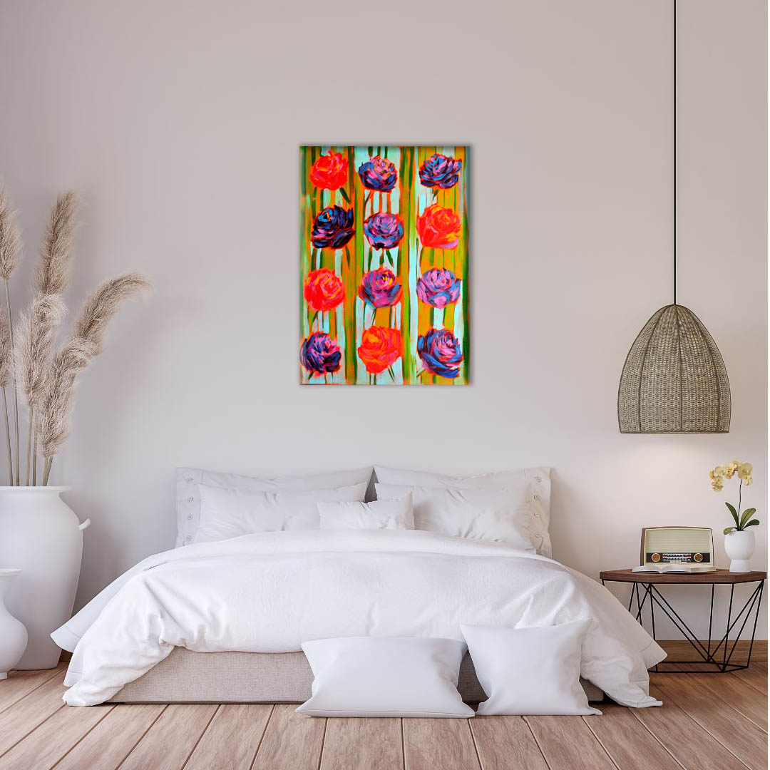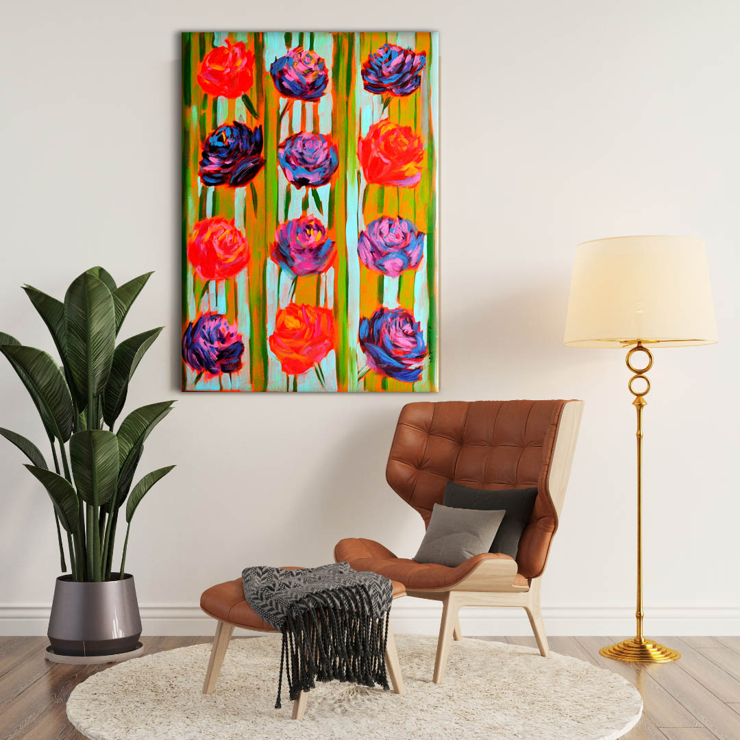 Obraz posiada zamalowane boki zatem nie potrzebuje ramy. Można go od razu zawiesić na ścianie
